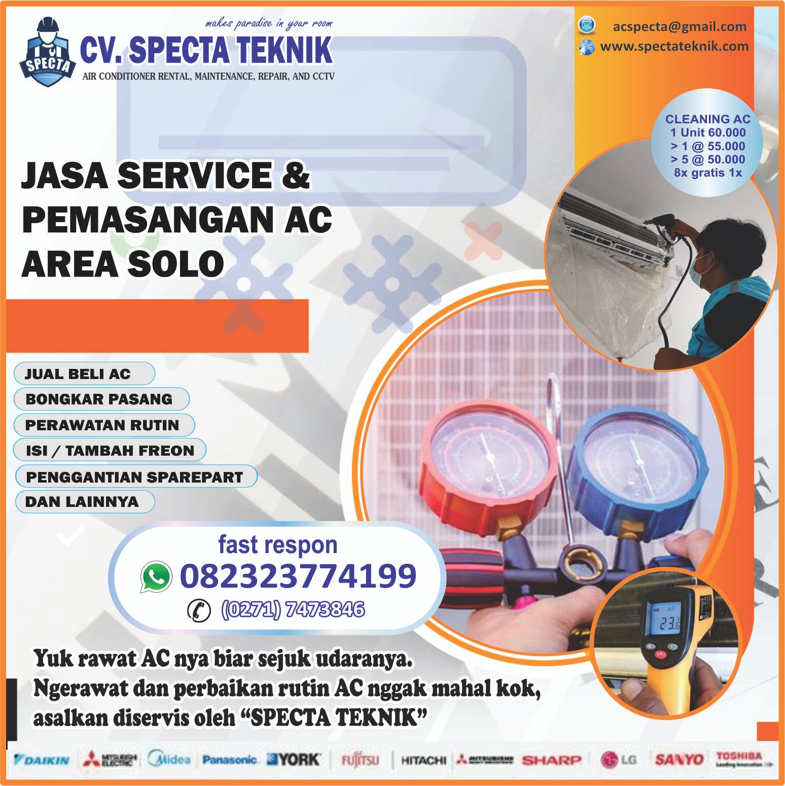 Mereka transparan dalam memberikan estimasi biaya sejak awal, baik untuk servis ringan seperti cuci AC hingga perbaikan berat. Anda tetap bisa mendapatkan hasil kerja berkualitas tanpa harus menguras anggaran rumah tangga.